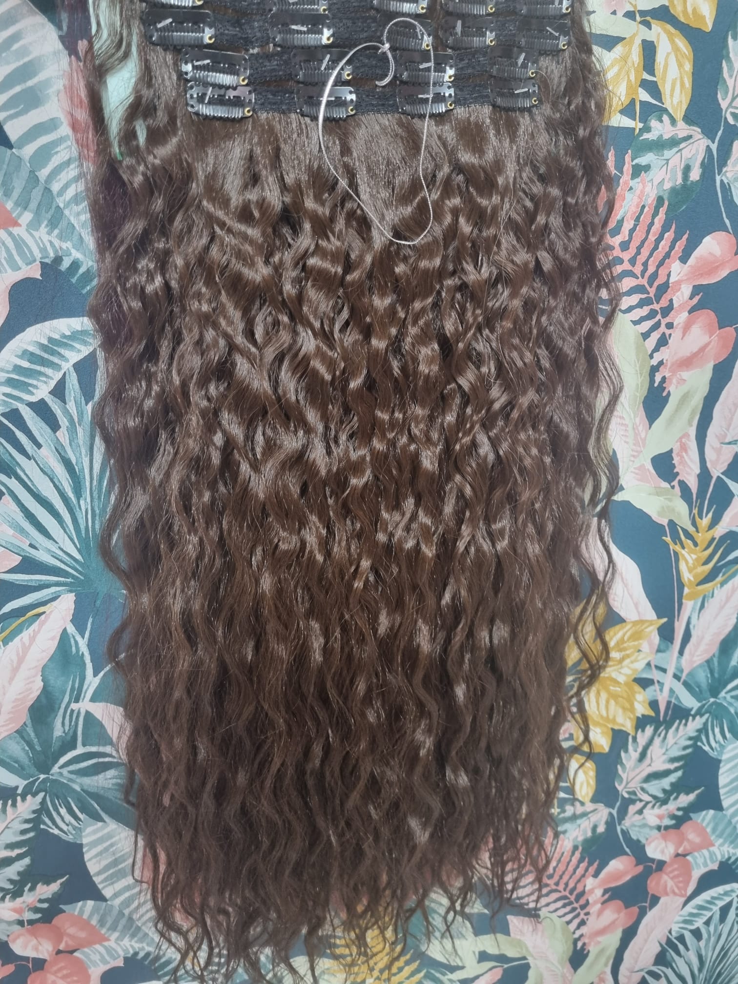 Extension clip 7bande 70cm 230GR in termofibra riccio morbido castano n6