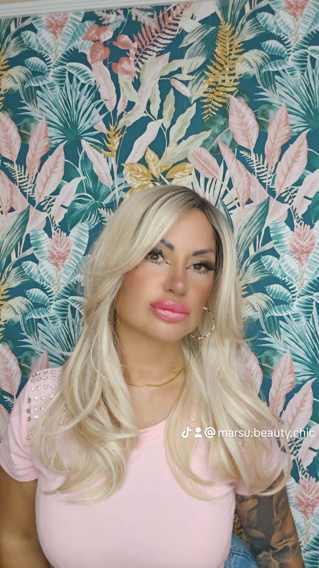 NEW ENTRY WIG 55CM SPETTINATA CON CIUFFI A TENDINA, SFUMATURE BIONDO PLATINO