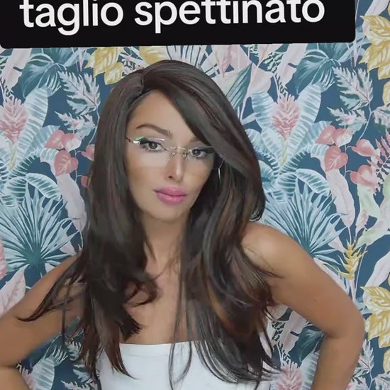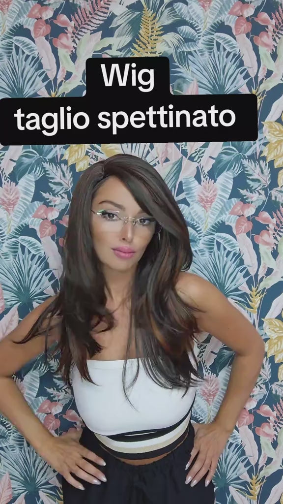 Wig (economy)cucita a macchina riga centrale bianca mod.spettinato col.cioccolato caramello