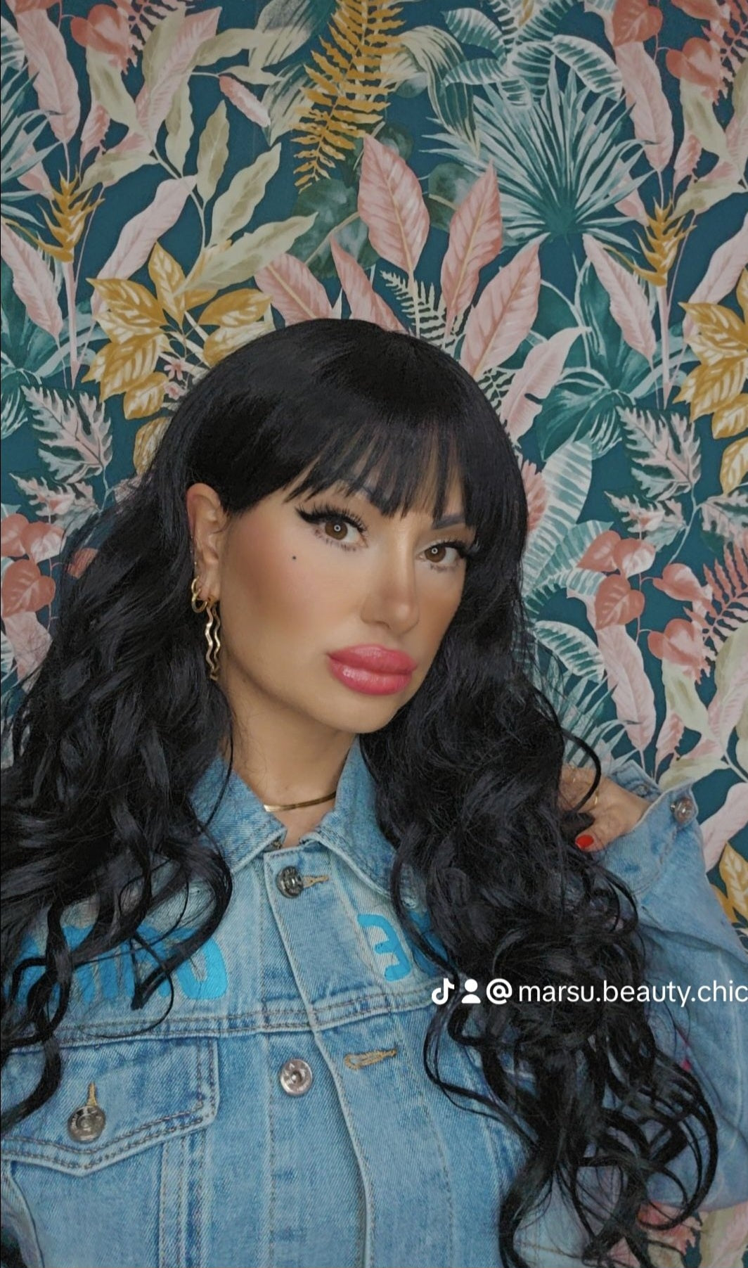 Wig riccio mosso con frangia 65/70cm color n1 (nero)